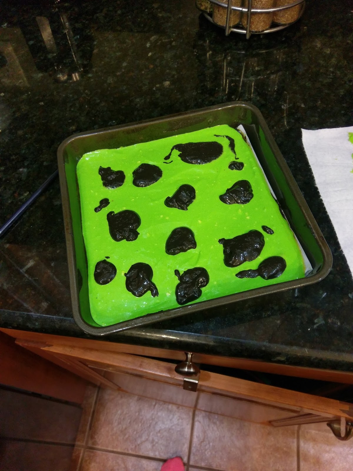 mouth watering. We have positively chowed our way through these brownies because they are such a satisfying mix of dense chocolate and light cream cheese topping. And they're super festive. You could always go orange instead of green or split the cream cheese and dye half green, half purple, and mix in the brownie batter swirls for an impressively insane Halloween trifecta. Either way, they will get eaten, and they will get eaten fast. Be sure to keep these in the fridge (if they last that long) and reheat for 30 seconds in the microwave to get that straight-from-the-oven goodness that fudge brownies are known for...