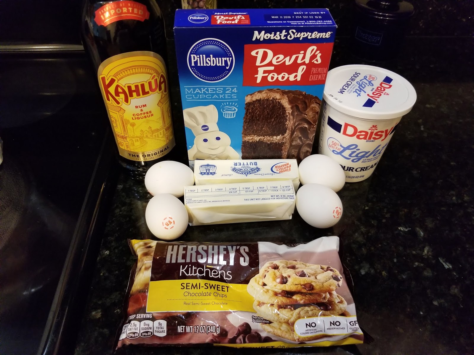 The cake recipe itself is from scratch, but I assume you could probably try to do this with a box of vanilla cake mix, but the cake needs to be dense to hold the fudge layer in place, so just keep that in mind. To make the vanilla bundt cake, gather: